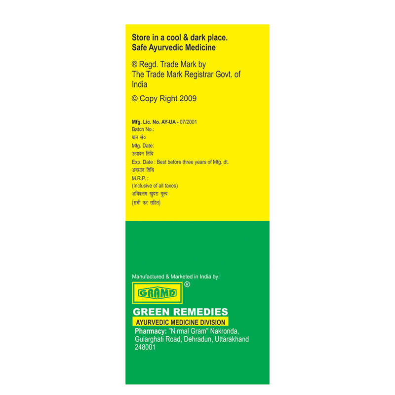 Arand Patra (Ricinus communis), Baboona Teil (Matricaria chamomilla), Bhantaki (Solanum melongena), Dhatura (Datura metal), Haridra (Curcuma longa), Jaifal (Myristica fragranse), Kapoor (Camphora cinnamomum), Laung (Syzygium dichotoma), Namak With Iodine (Salt iodized), Pipadiya Katha (Acacia catechu), Rason (Allium sativum), Sukshmela (Elettaria cardamomum), Shudh Khatika (Chalk purified), Sasarp Teil (Brassica campestris oil), Tambul Patra (Piper betle), Til Teil (Sesamum indicum), Tarpeen (Saral Oil), Yavani (Hyoscyamus niger).