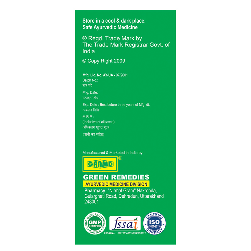- 5-10 ml twice or thrice a day with luke warm water before or after meal.