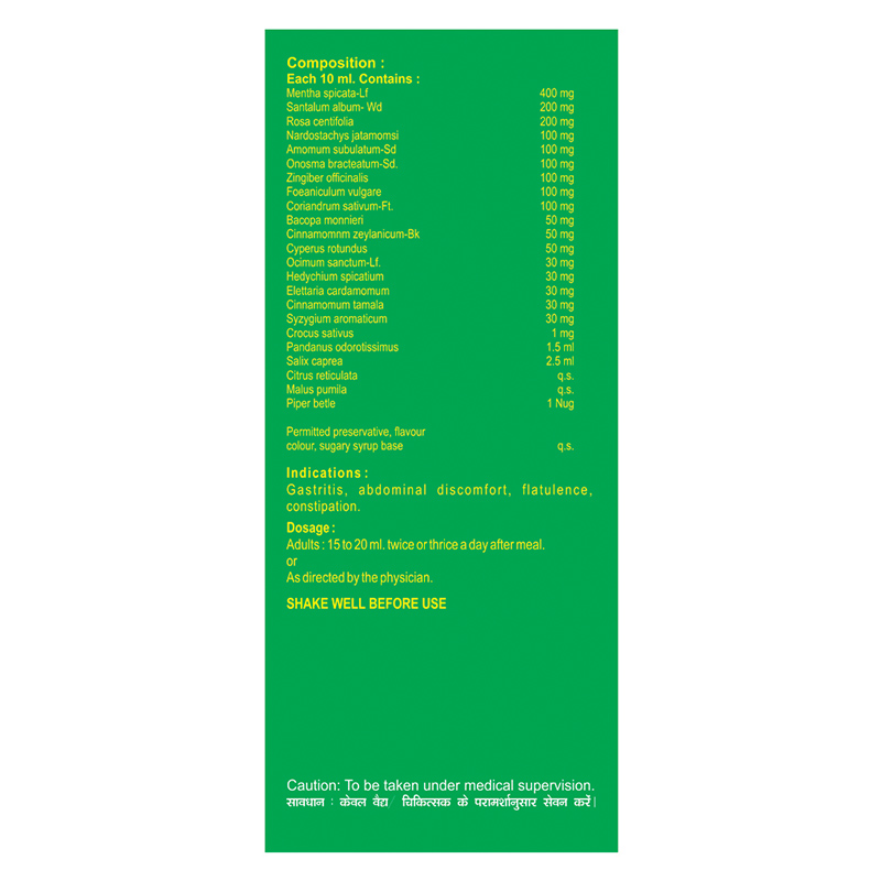 - 5-10 ml, 2 to 3 times a day, diluted with lukewarm water.